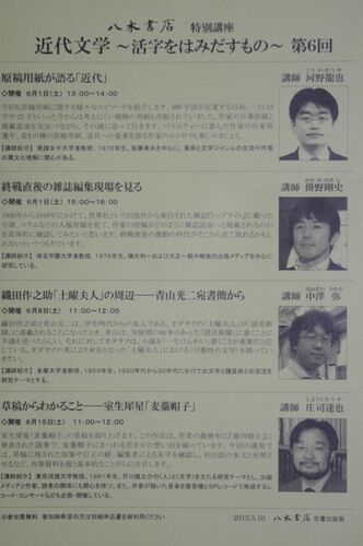 近代文学――活字をはみだすもの―― 第6回 (八木書店 特別講座) ■■近代文学――活字をはみだすもの――■■ ■原稿用紙が語る「近代」■ 講師 河野 龍也(こうの たつや)先生 実践女子大学准教授 日時 6月1日(土) 13:00〜14:00 ■終戦直後の雑誌編集現…